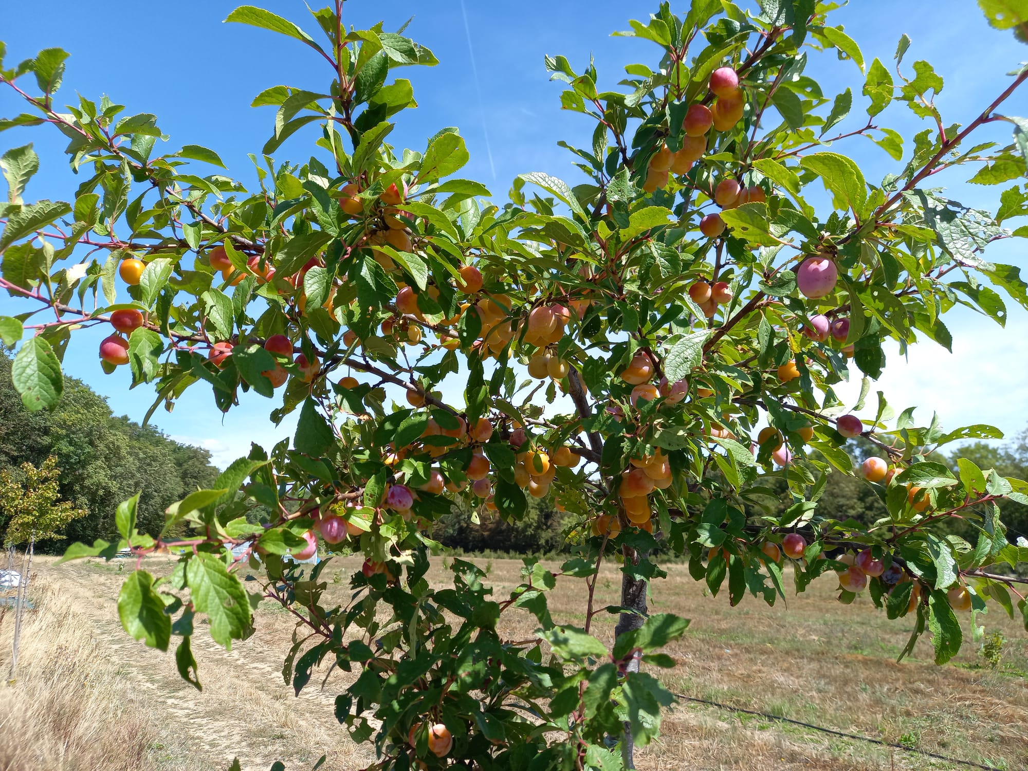 Nous y comptons quatre variétés locales de poiriers, pommiers, mirabelles et pruneaux.