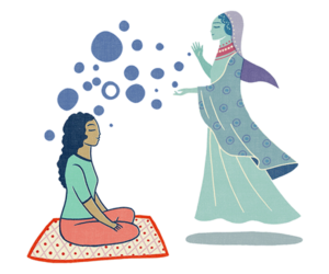 Tout ce qui draine notre énergie et nous empêche d’être complètement éveillés est un démon. L’approche consistant à donner forme à ces forces intérieures et à les nourrir, plutôt que de lutter contre elles, a été à l’origine articulée par une enseignante bouddhiste tibétaine du XIe siècle nommée Machig Labdrön (1055–1145). La pratique spirituelle qu’elle a développée a été appelée Chöd, et elle a généré des résultats si étonnants qu’elle est devenu très populaire, se propageant largement à travers le Tibet et au-delà.