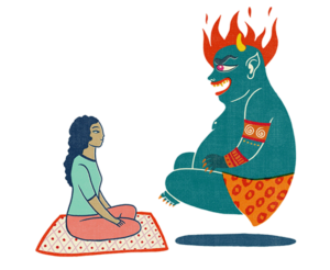 Démons (maras en Sanskrit) ne sont pas des goules sanguinaires qui nous attendent dans les coins sombres. Les démons sont en nous. Ce sont des énergies que nous éprouvons tous les jours, comme la peur, la maladie, la dépression, l’anxiété, les traumatismes, les difficultés relationnelles et la dépendance.