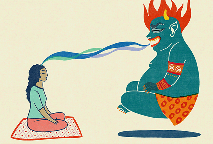 Tout ce qui draine notre énergie et nous empêche d’être complètement éveillés est un démon. L’approche consistant à donner forme à ces forces intérieures et à les nourrir, plutôt que de lutter contre elles, a été à l’origine articulée par une enseignante bouddhiste tibétaine du XIe siècle nommée Machig Labdrön (1055–1145). La pratique spirituelle qu’elle a développée a été appelée Chöd, et elle a généré des résultats si étonnants qu’elle est devenu très populaire, se propageant largement à travers le Tibet et au-delà.