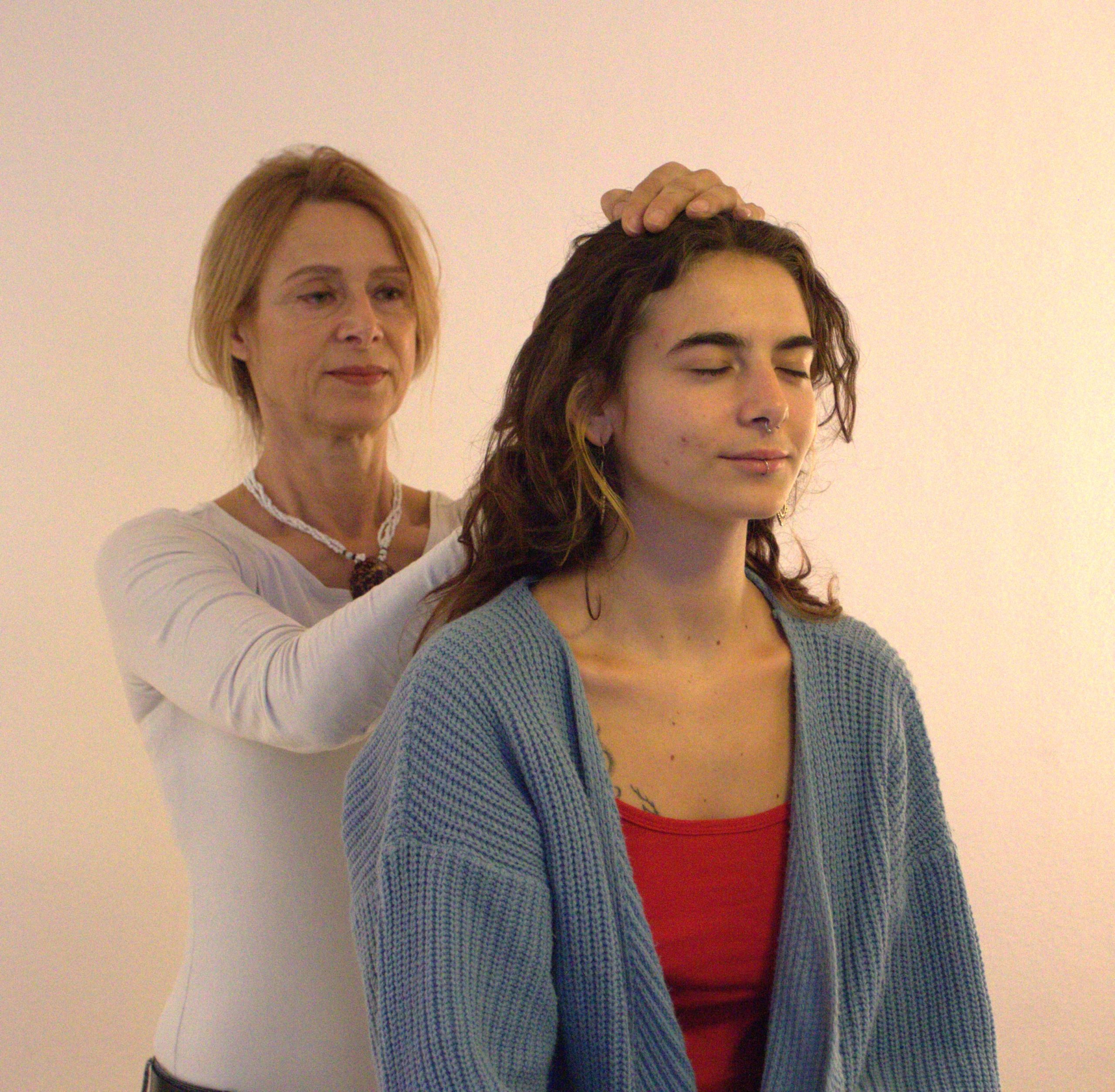 J’ai créé dans mon laboratoire, un espace de soin. Je demande si la personne est d’accord de recevoir le soin. Si elle accepte je l’y reçois sur ma table de massage. Et soigne comme en réel dans mon cabinet.